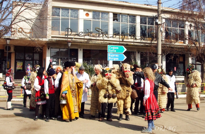 | Кукеровден на Сирни Заговезни в гр.Българово. Подготовката на ритуала и обличането на участниците в маскарадните игри става на скрито място-за да не ги разпознаят съселяните им. С изгрева на слънцето, маскираната дружина, водена от главния кукер или бабата излиза на мегдана /хорището/ и тръгвайки на изток, обхожда къщите. Линк към събитието... | |